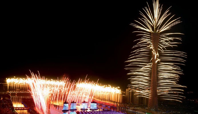 With Haixinsha Island, Pearl River, Liede Bridge and Canton Tower as stage, Panda Firework Group presented an unforgettable 360°panoramic fireworks experience for international audience attending the opening and closing ceremonies of Guangzhou Asian Games. There two shows marked another milestone of Panda Fireworks Group’s creative and design. Many cultural symbols like Red Kapok flowers, dragon, Chinese characters and sails were interpreted with the language of fireworks. The dazzling display has become one of the most memorable legacies of the Games.